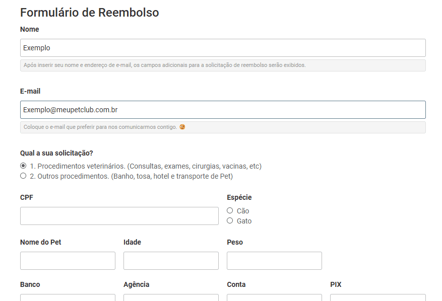 Após colocar seu nome e e-mail, os campos serão abertos automaticamente para preenchimento.